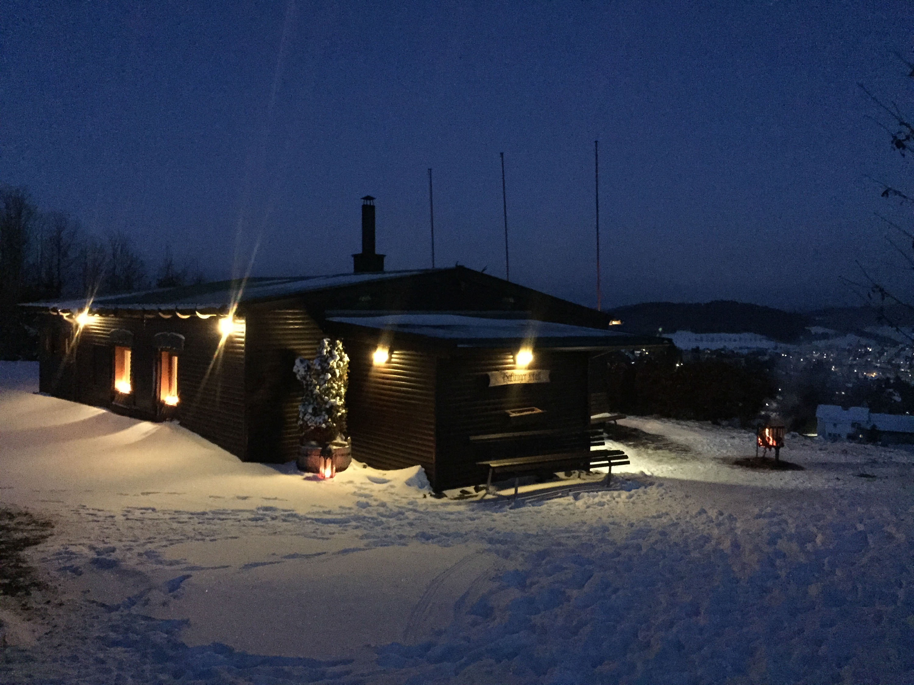 Die Haflinger Hütte selbst ist ein einfaches, eingeschossiges Blockhaus mit gemütlichem Innenraum. Sie verfügt über einen rustikalen Veranstaltungsraum, Sitzgelegenheiten und eine kleine Küchenecke, sodass auch Bewirtung möglich ist. Eine Besonderheit ist der alte „Bollerofen“ (Holzofen) im Inneren, der in der kalten Jahreszeit wohlige Wärme spendet. Im Sommer wiederum verlagert sich das Geschehen oft ins Freie: Grillmöglichkeiten und ein überdachter Außenbereich laden dazu ein, die Feier unter freiem Himmel zu genießen. Direkt vor der Hütte gibt es eine Freifläche, die z.B. für Bierzeltgarnituren oder als kleine Open-Air-Bühne genutzt werden kann. Diese Flexibilität macht den Ort bei allen Jahreszeiten attraktiv – ob winterliche Glühweinabende am Ofen oder sommerliche Grillfeste unterm Sternenhimmel, die Hütte passt sich an.